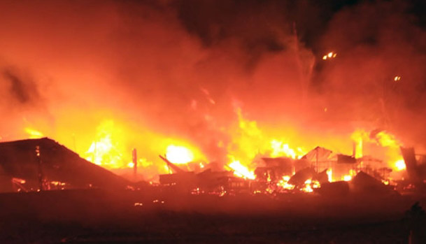 “Dari data yang kita terima ada enam gudang yang terbakar, untuk asal api diduga hubungan arus pendek listrik,” sebutnya.