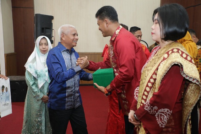 KISARAN, Eksisnews.com – Setelah pelaksanaan serah terima jabatan Kapolres Asahan dari AKBP Faisal F Napitupulu, S.IK, MH kepada AKBP Nugroho Dwi Karyanto, S.IK, Pemkab Asahan gelar kegiatan Pisah Sambut Kapolres Asahan, Sabtu (26/2/2020). Bupati dan Forkopimda Asahan, Sekretaris Daerah Kab. Asahan, Staf Ahli, Asisten, OPD, Jajaran Pejabat Utama Polres Asahan, Ketua TP. PKK Kab. Asahan beserta pengurus, Camat, Lurah, Tokoh Masyarakat, Tokoh Agama, Tokoh Pemuda, Kakan Kemenag serta masyarakat turut hadir dalam kegiatan yang dilaksanakan di Pendopo Rumah Dinas Bupati Asahan tersebut.