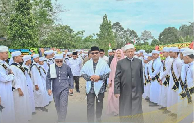 EKSISNEWS.COM, Padangsidimpuan – Penjabat Wali Kota Padangsidimpuan, Dr. H. Letnan Dalimunthe, S.K.M, M.Kes, bersama jajarannya, menghadiri acara Wisuda Tahfizhul Qur’an Pondok Pesantren Tahfizh Wadi Al-Qur’an, Desa Batang Bahal, Kecamatan Padangsidimpuan Batunadua, Kota Padangsidimpuan, Minggu (26/5/24).