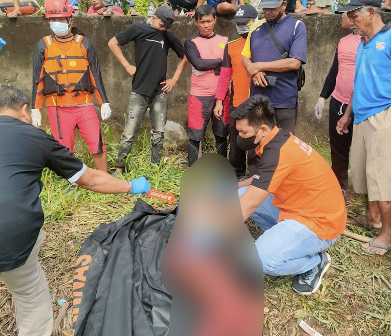 Informasi dihimpun, temuan mayat itu pertama kali diketahui oleh Janna yang melihat korban mengambang di pinggir sungai dengan mengenakan pakaian celana warna merah dan kaos abu-abu.