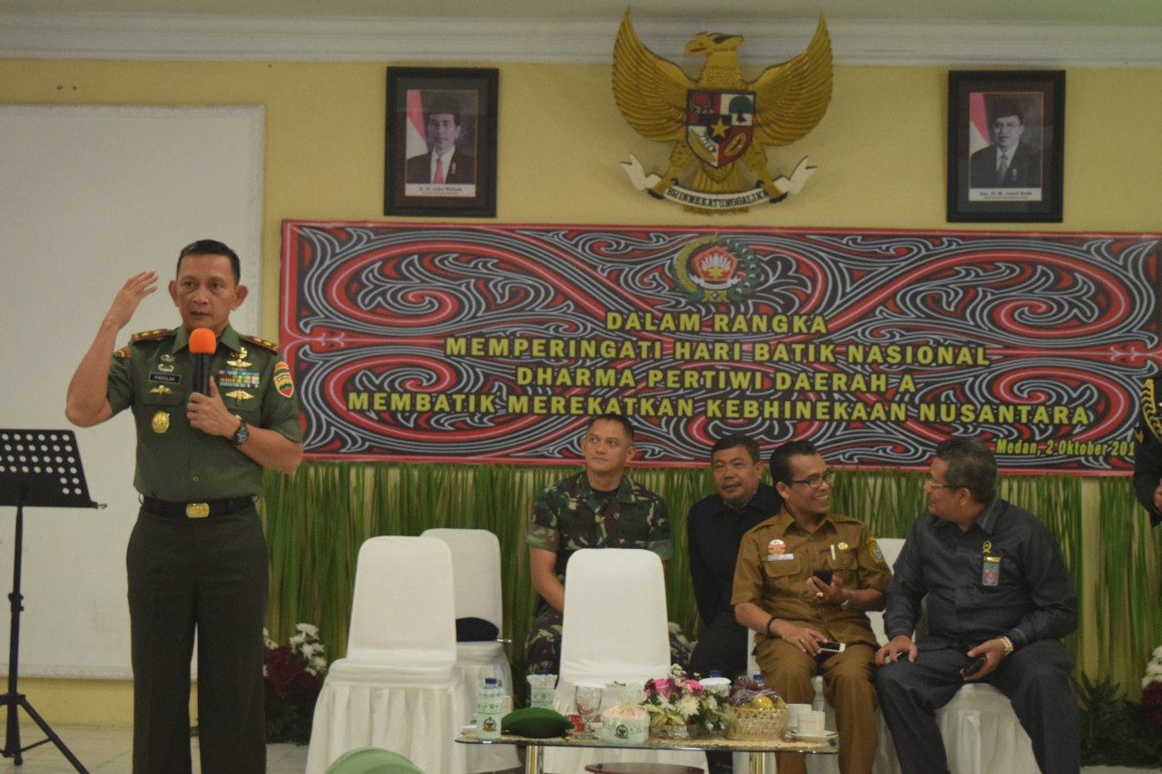 Acara membatik ini dibuka oleh Ketua Dharma Pertiwi Daerah D yang diwakili oleh Ketua Persit KCK PD I/Bukit Barisan Ny. Sabrar Fadhilah, kegiatan ini dengan mengusung tema ” Membatik Merekatkan Kebhinekaan Nusantara ” acara ini sekaligus pemecahan rekor MURI membatik dalam rangka HUT ke – 73 TNI Tahun 2018 yang di gelar di seluruh Indonesia.