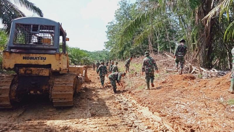 Pembuatan dan pembukaan badan jalan sepanjang +3.000 M yang menghubungkan Dusun V menuju Dusun VI Desa Lama Baru dan menuju Desa Telaga Said Kec. Sei Lepan Kab. Langkat, personel dibantu alat berat melanjutkan pembukaan badan jalan dari titik nol sepanjang 1.890 meter dan Buldozer dibantu Satgas meratakan badan jalan.
