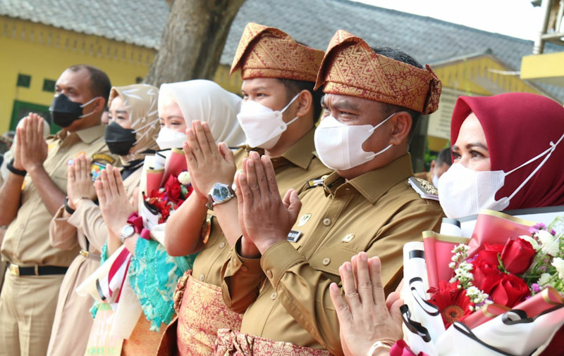 Dalam prosesi upacara penerimaan ini merupakan hari pertama kerjanya sebagai Bupati dan Wakil Bupati untuk menakhodai Kabupaten Sergai Tanah Bertuah Negeri Beradat periode 2021-2024.