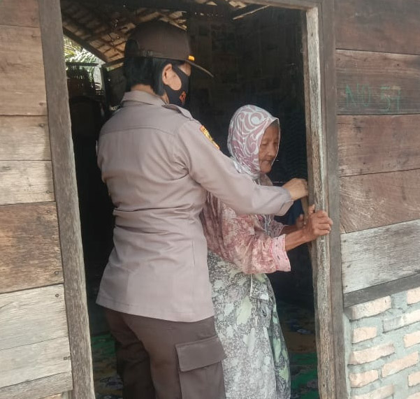 Polres Resort Batubara saat melakukan keliling pantauan yang dilakukan Kabag Sumda Kompol , Efrida Lumban Raja SE. bersama stafnya AKP Julham SH.MH menemui Ibu Nurbaiti (71) yang sedang menangis, berharap untuk Kapolres Batubara AKBP Ikhwan Lubis SH MH.