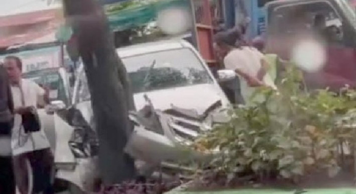 “Siang kejadiannya. Mobil dari arah Pajak Melati, menghindari sepeda motor terus terhantam lah pembatas jalan itu,” jelasnya.
