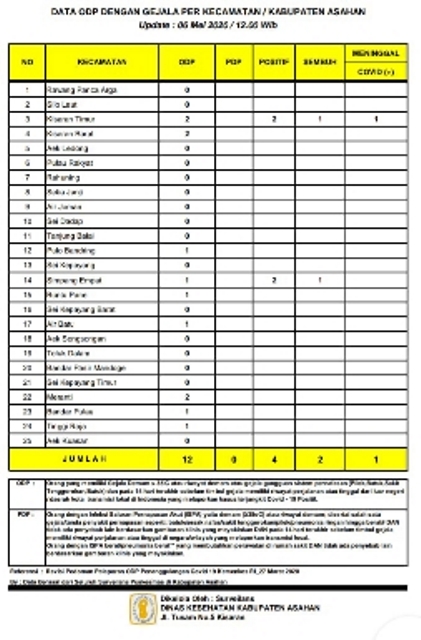 Demikian dikatakan Juru bicara Tim Gugus Tugas Covid-19 Pemerintah Kabupaten Asahan H.Rahmat Hidayat Siregar S.Sos, M.Si kepada wartawan, Rabu (06/05/2020).