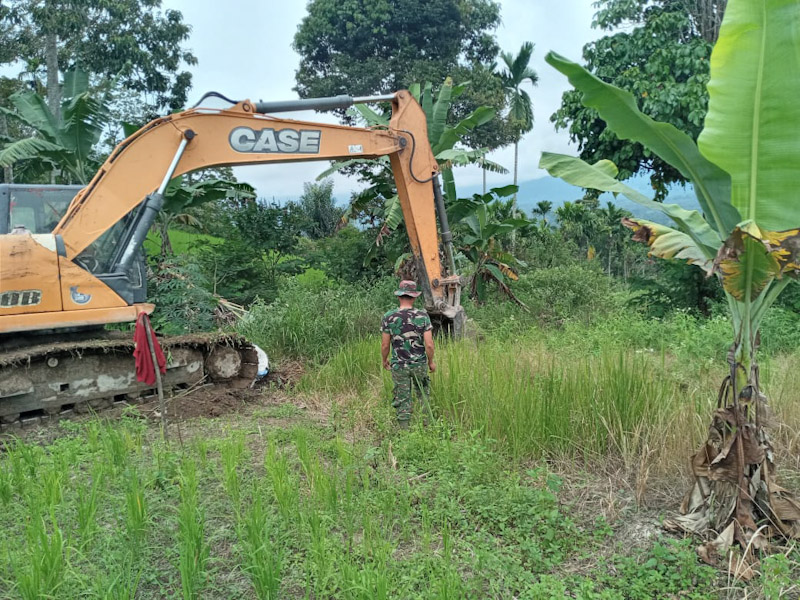 Dengan semangatnya Satgas dan operator alat berat berupaya menuntaskan pekerjaan fisik untuk membantu masyarakat petani tersebut.