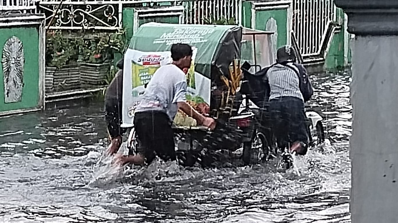 Amatan wartawan, Kamis (5/5/2022), banjir mencapai betis orang dewasa hingga masuk ke rumah warga serta kendaraan yang melintas mengalami mogok.