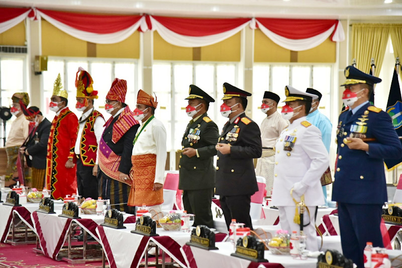“Kembanggaan kita tadi yang membawa baki adalah putri dari Sumut, yakni Ardelia Muthia Zahwa kelahiran Kota Tebingtinggi, yang merupakan siswi SMA Harapan Medan,” ucap Edy Rahmayadi usai mengikuti upacara secara virtual dari Aula Tengku Rizal Nurdin, Rumah Dinas Gubernur, Jalan Jenderal Sudirman Nomor 41 Medan.