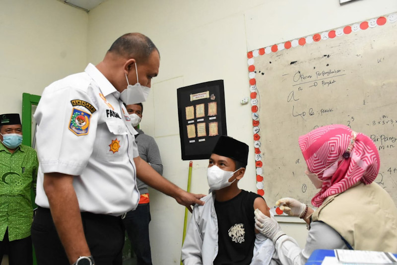 “Serbuan vaksinasi di Kabupaten Tanah Bertuah Negeri Beradat hari ini, terdapat di tiga titik yaitu di MTs Al-Wasliyah 16 Kampung Juani Kecamatan Perbaungan sebanyak 2.000 dosis vaksin, kemudian di SMPN 1 Sei Rampah sebanyak 1.600 dosis dan di MTs Ibtidaiyah Desa Martebing Kecamatan Dolok Masihul sebanyak 1.600 dosis vaksin sehingga total keseluruhan sebanyak 5.200 dosis vaksin dalam kegiatan serbuan vaksinasi bersama TNI/Polri hari ini,” kata Sekda Faisal Hasrimy.