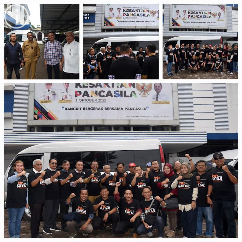 EKSISNEWS.COM, Medan – Pelaksana Tugas (Plt) Kepala Dinas Komunikasi dan Informatika (Kominfo) Sumatera Utara (Sumut) Ilyas Sitorus melepas keberangkatan rombongan wartawan untuk kunjungan kerja ke kabupaten/kota. Tujuannya untuk menggali informasi terkait Stunting, Pajak, Pembangunan Infrastruktur dan Pariwisata di Pematangsiantar dan Kabupaten Simalungun.