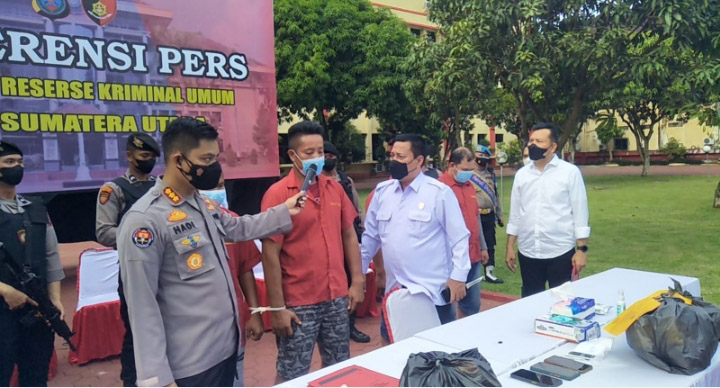 “Keempat tersangka memiliki peran masing-masing,” jelas Direktur Reskrimum Polda Sumut, Kombes Pol Tatan Dirsan Atmaja didampingi Kabid Humas, Kombes Pol Hadi Wahyudi saat Konferensi Pers pengungkapan kasus tersebut di Mapolda SU, Senin (14/3/22) petang.