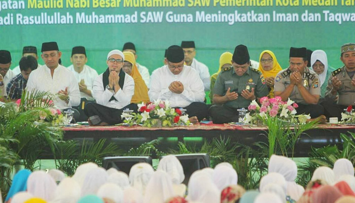Sejak pagi warga dengan penuh antusias hadir di lapangan untuk mengikuti maulid. Tepat pukul 09.00 WIB, maulid pun dimulai dengan pembacaan surat suci Al Qur’an oleh Hj Nurjanah, qoriah terbaik ketiga MTQ Nasional di Pontianak 2019. Setelah itu maulid yang juga dihadiri unsur Forkopimda Kota Medan, Sekda Kota Medan Ir Wiriya Al Rahman MM, pimpinan OPD, camat dan lurah se-Kota Medan, tokoh agama, tokoh masyarakat serta ibu-ibu pengajian dilanjutkan dengan doa bersama yang dipimpin Wakil Ketua MUI Kota Medan DR H Hasan Maksum MAg.