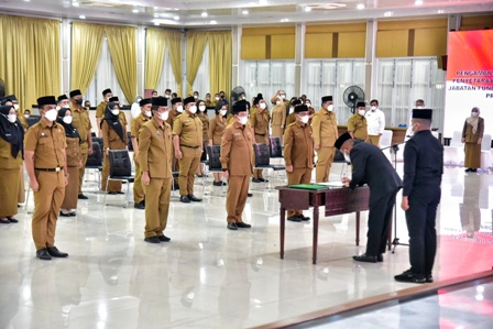 Pada kesempatan tersebut, Gubernur mengambil sumpah/janji dan melantik dua orang pejabat fungsional ahli madya dan 54 pejabat fungsional ahli muda. Dua orang pejabat yang dilantik, yaitu Heru Suwondo dari Dinas Tanaman Pangan dan Hortikultura dan Juliadi dari Dinas Perumahan dan Kawasan Permukiman, hadir secara virtual karena sedang bertugas ke luar daerah. Hadir sebagai saksi, Asisten Pemerintahan dan Kesejahteraan Rakyat M Fitriyus dan Asisten Administrasi Umum Hasmirizal Lubis.(ENC-2)