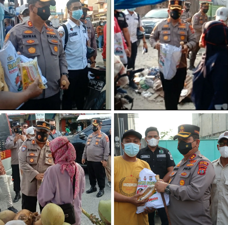 Di hari dimana seluruh masyarakat di dunia akan bersiap menyambut Hari raya Idhul Adha yang jatuh pada tanggal 20/7/2021 esok, jajaran Polres Baru bara melakukan bakti sosial nya dengan memberikan sembako kepada para pedagang gerobak yang setiap hari melakukan aktivitas di pinggir jalan di beberapa kota yang ada di Kabupaten Batubara pada Senin (19/7/2021).