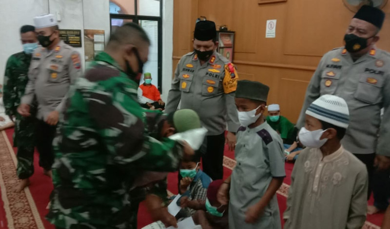 TNI – Polri memberikan 100 paket sembako dan tali asih kepada abang becak dan anak yatim. Disambut dengan takbir, para abang becak berjanji akan mendukung keamanan dan ketertiban berkendara serta terus menjaga kantibmas .(ENC-Bm).
