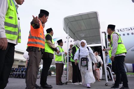 “Kami menyambut bapak dan ibu dengan hati yang tulus dan gembira serta bersyukur seluruh jemaah tiba di tanah air dalam keadaan sehat,” ucapnya.