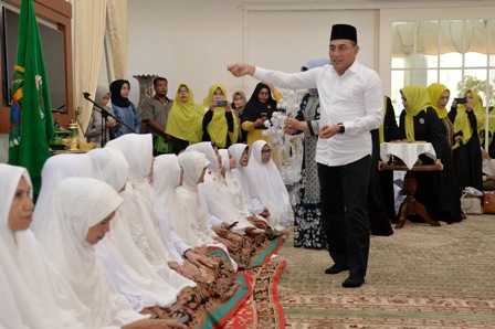 Pesan tersebut disampaikan Gubernur Edy Rahmayadi usai menepung tawari calon jemaah haji perempuan dari Majelis Quran Sudirman (MQS) yang akan berangkat ke Tanah Suci, di Rumah Dinas Gubernur Sumut, Jalan Jenderal Sudirman 41, Medan, Jumat (19/7/2019).