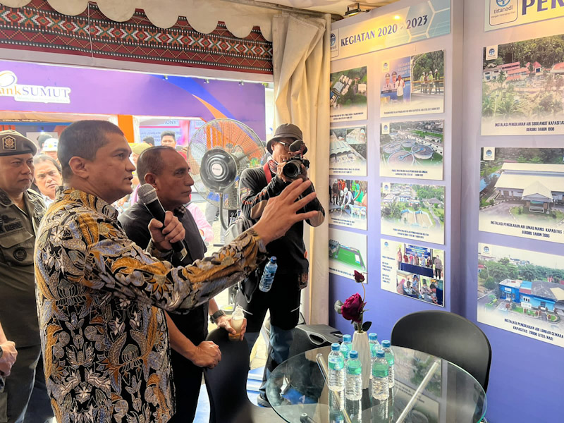 Gubsu dan rombongan yang hadir di Stand Perumda Tirtanadi merasa puas akan penjelasan Dirut Kabir Bedi dan Gubsu berharap dari penjelasan tersebut dapat terealisasi dalam waktu dekat. (ENC-1)