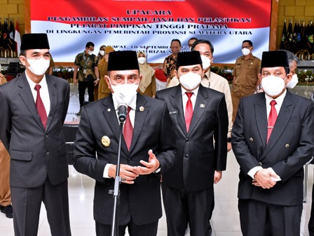 EKSISNEWS.COM, Medan – Gubernur Sumatera Utara Edy Rahmayadi tekankan kepada Kepala Dinas Kesehatan (Kadinkes) Provinsi Sumatera Utara (Sumut) Ismail Lubis yang baru dilantik, Jumat (10/9/2021) harus bisa bekerja cepat, tepat dan benar.