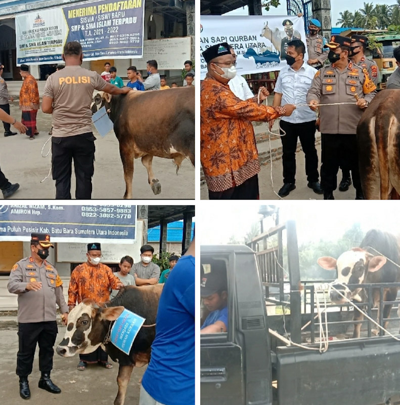 Pemberian sapi kurban oleh Kapolda Sumatra Utara ini diwakili langsung Kapolres Batubara AKBP Ikhwan Lubis SH MH yang menjelaskan, untuk menjelang Hari Raya Kurban dirinya atas nama Kapolda Sumatra Utara , membagikan dua ekor sapi kepada tokoh agama juga Pesantren .