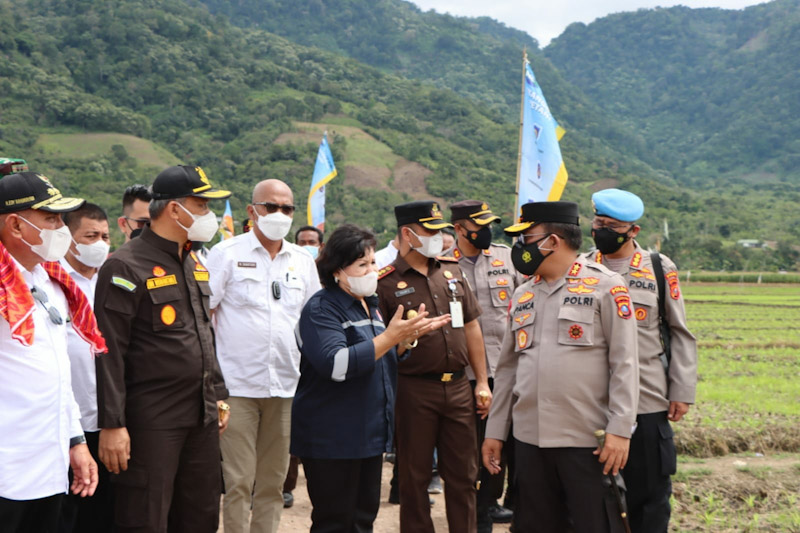 Sesampainya di lokasi, Kapolda Sumut dan rombongan beserta Bupati Karo Cory Sriwaty Br Sebayang terlebih dahulu meninjau hasil tanaman bawang milik masyarakat di Desa Lau Solu.