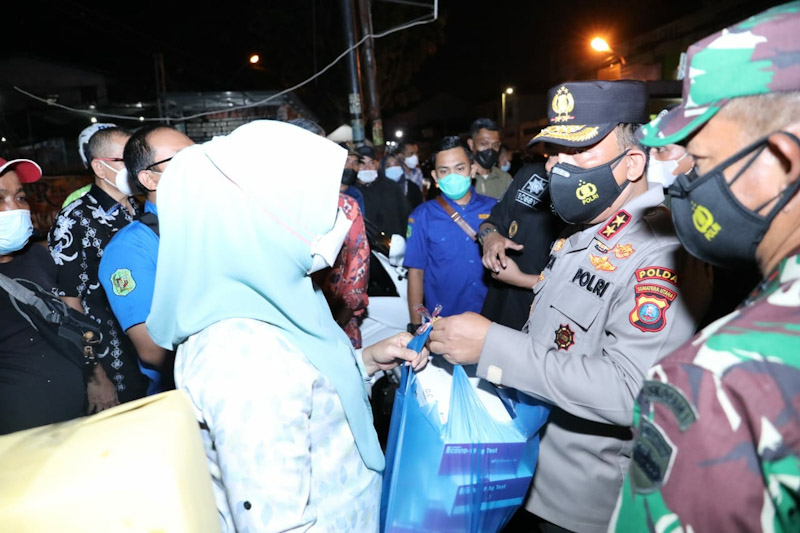EKSISNEWS.COM, Medan – Kapolda Sumut, Irjen Pol RZ Panca Putra Simanjuntak, memberikan bantuan alat swab antigen kepada tim kesehatan yang tengah menangani masyarakat di dua lingkungan di Kota Medan yang terpapar Covid-19.