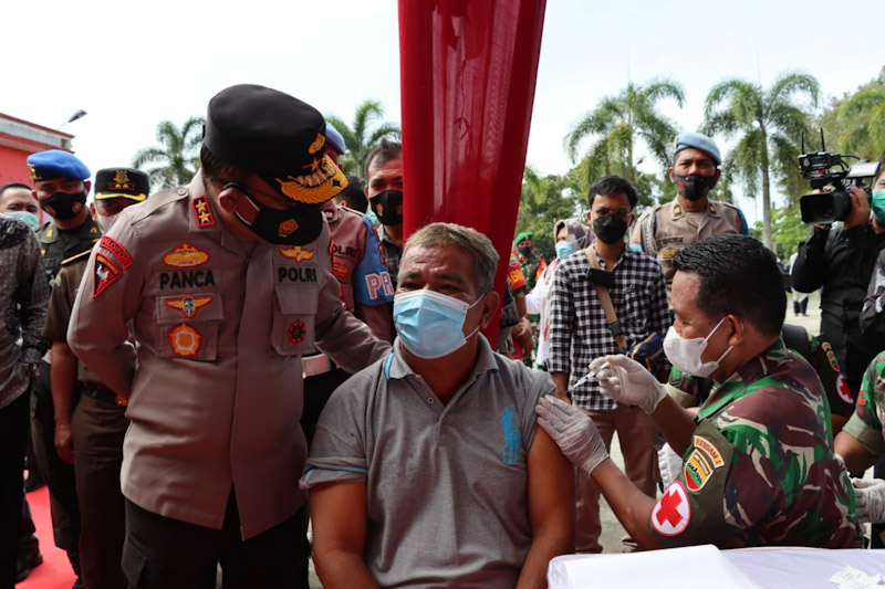 EKSISNEWS.COM, Asahan – Kapolda Sumut Irjen Pol. Drs. R. Z. Panca Putra S, M.Si meninjau pelaksanaan vaksinasi serentak bagi lansia yang digelar di lapangan Stadion Mutiara Kisaran, Jumat (11/02/2022).