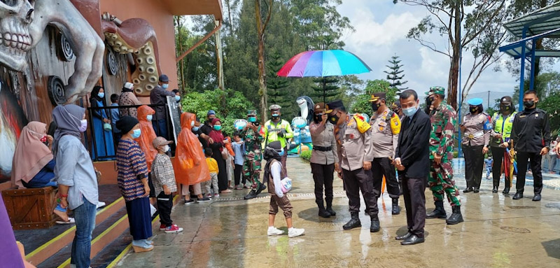 Salah satu objek wisata yang ditinjau dengan menyambangi Funland Mickey Holiday, Berastagi, Kabupaten Tanah Karo, Sabtu (15/5/2021). Setibanya di lokasi wisata, Kapolda Sumut bersama Pangdam I/BB berserta rombongan disambut Kapolres Tanah Karo, AKBP Yustinus Setyo.