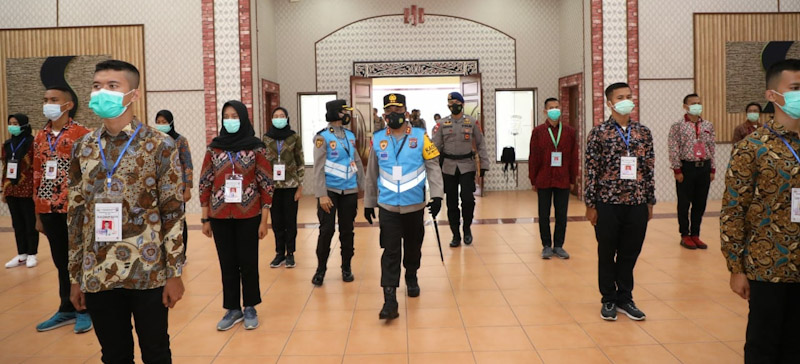 Kegiatan penandatanganan Pakta Integritas dan pengambilan sumpah panitia, peserta dan orang tua pada seleksi penerimaan anggota Polri T.A. 2021 berjalan dengan lancar dan tetap mematuhi protokol kesehatan. (ENC-Why)
