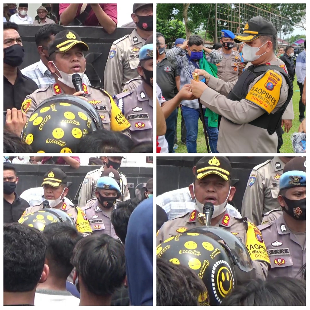 Kapolres Batubara AKBP Ikhwan Lubis SH MH yang juga langsung turun dalam mengamankan aksi demo mahasiswa mengatakan saat melakukan pengaman dirinya sudah menghimbau kepada pendemo untuk tidak melakukan hal anarkis. “Dan itu juga sudah kita mediasikan kepada kordinator mahasiswa, mereka menyambut baik himbauan yang saya berikan. Namun diduga situasi tidak terkendali dikarenakan ada provokasi mahasiwa suruhan untuk melakukan tindakan tindakan memancing kericuhan dan ini akan kami lakukan terus kami lakukan penyelidikan yang nantinya akan dilakukan satuan intel dan reskrim,” ujarnya.