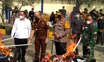 EKSISNEWS.COM, Medan – Pemusnahan sejumlah barang bukti Barang Milik Negara (BMN) yang meliputi toritorial Bea dan Cukai Belawan Sumatera Utara dihadiri Bupati Batubara Ir. Zahir MAP dan Kapolres Batubara AKBP Ikhwan Lubis SH MH yang digelar di