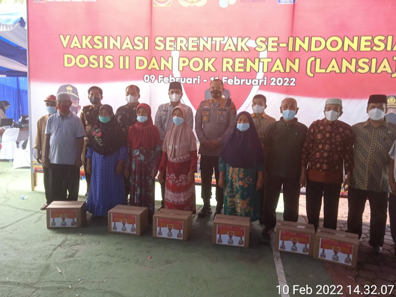 Pada Akhir kegiatan Vicon bersama Forkopimda,tampak terlihat Kapolres Madina AKBP. M.Reza membagikan berupa bingkisan tali asih pada peserta lansia yang mengikuti Vaksinasi serentak di ikuti Bupati Mandailing Natal,Dandim 0212/TS,Ketua DPRD Madina,Kajari Madina,Kakan Kemenag dan lainnya, (ENC-P.Hsb)