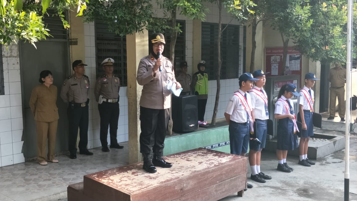 “Saya harap untuk anak-anak yang saat ini mengikuti upacara bendera jangan sungkan-sungkan untuk mengingatkan kepada orang tua atau siapa pun yang mengantar anak-anak pergi ke sekolah,agar mentaati aturan dan beretika berlalu lintas demi keselamatan, cintailah diri anda dan hindari diri anda dari kecelakaan,” ujar Kompol Hj.Trila Murni SH.