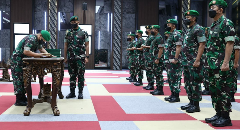 EKSISNEWS.COM, Jakarta – Kepala Staf Angkatan Darat (Kasad) Jenderal TNI Dudung Abdurachman, S.E., M.M., memimpin acara serah terima 14 jabatan strategis TNI Angkatan Darat meliputi jabatan Pangkotama dan Kabalakpus TNI AD serta Dandenmabesad di Aula Jenderal Besar A.H. Nasution Lantai III Markas Besar Angkatan Darat (Mabesad), Senin (31/1/2022).