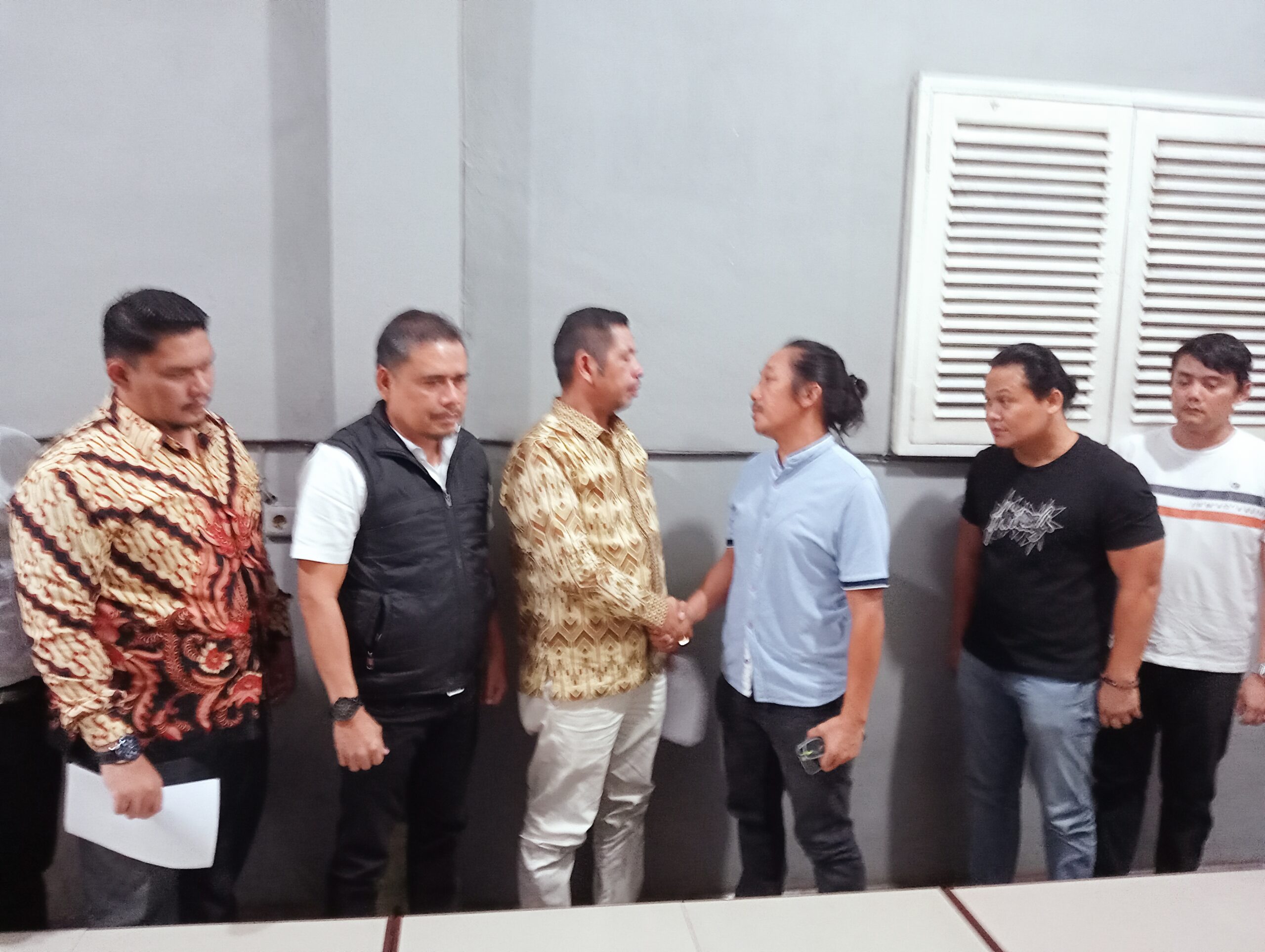 Pantauan terlihat usai melakukan perdamaian, kedua belah pihak saling bersalaman tanda mengakhiri masalah yang timbul dengan niat baik akan memperbaiki kinerja untuk kedepan agar lebih baik.(ENC-1)