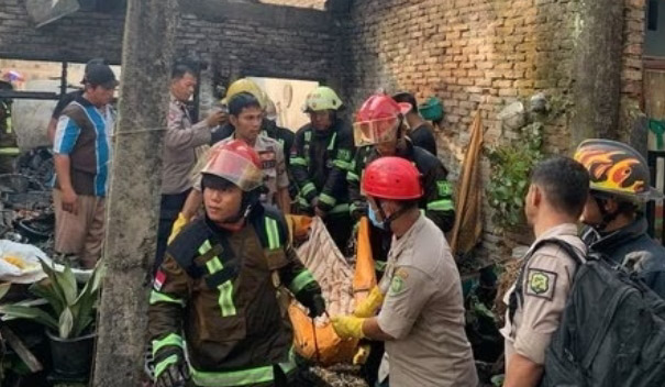 Usai meredakan api, petugas lalu meringsek masuk ke dalam rumah dan mengevakuasi keenam korban yang meninggal dunia.