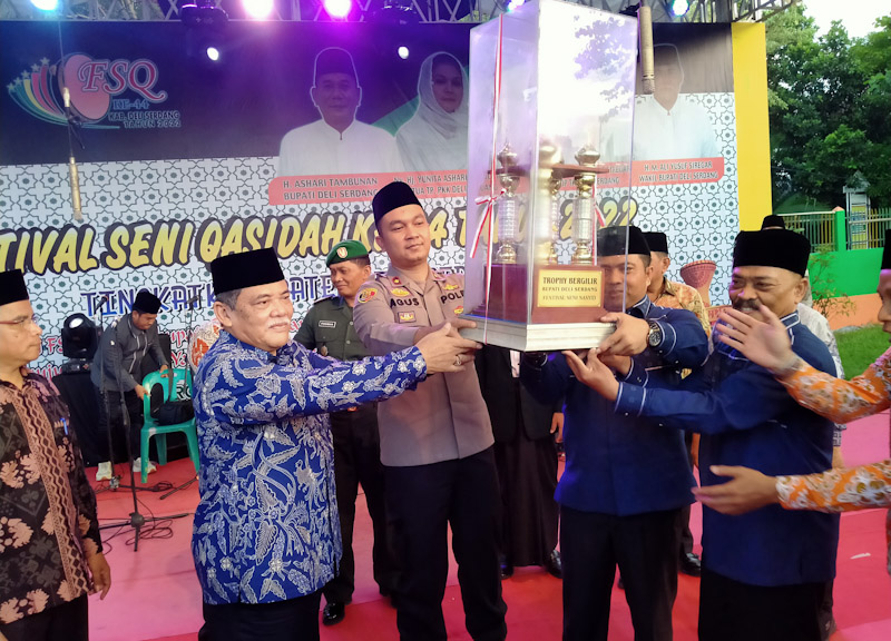 EKSISNEWS.COM, Deli Serdang – Festival Seni Qasidah (FSQ) ke 44 tingkat Kabupaten Deli Serdang resmi ditutup Wakil Bupati H. M. Ali Yusuf Siregar, Sabtu (25/6/2022) di lapangan Sampali, Jalan Irian Barat, Dusun XX, Desa Sampai, Kecamatan Percut Sei Tuan.