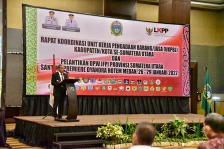 “Dengan kehadiran IFPI di Sumut, akan semakin jelas pengadaan barang dan jasa kita, dan pembangunan akan sukses,” kata Gubernur Edy Rahmayadi pada rapat koordinasi unit kerja pengadaan barang dan jasa (UKPBJ) kabupaten/kota se-Sumut, sekaligus pelantikan Dewan Perwakilan Wilayah (DPW) IFPI Sumut di Hotel Santika Dyandra, Jalan Kapten Maulana Lubis, Medan, Kamis (27/1/2022).