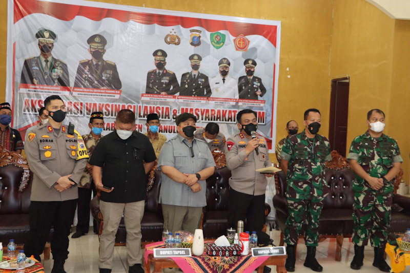 Hal tersebut disampaikan Kapolda Sumut disela-sela meninjau pelaksanan vaksinasi serentak di Aula Balai Karyawan PTPN III Kematan Batangtoru, Kabupaten Tapanuli Selatan, Jumat, (11/03).
