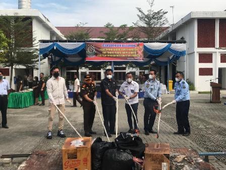 Barang bukti yang dimusnahkan dalam perkara pidana narkoba ini yakni narkotika jenis sabu seberat 2.422, 756 gram. Selanjutnya narkotik jenis ganja seberat 240 gram. Narkotika jenis ekstasi sebanyak 86 butir. Serbuk ekstasi seberat 199,45 gram. Happy five sebanyak 9 butir.