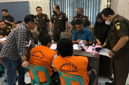 Kajati Sumut Idianto, SH,MH melalui Aspidum Arip Zahrulyani, SH,MH didampingi Kasi Penkum Kejati Sumut Yos A Tarigan, SH,MH, Kamis (23/6/2022) membenarkan bahwa Tim Jaksa Penuntut Umum (JPU) Kejati Sumut bersama dengan tim JPU Kejari Langkat sudah menerima tersangka SP, TS, HS, IS, RG, DP, JS dan HG beserta barang buktinya.