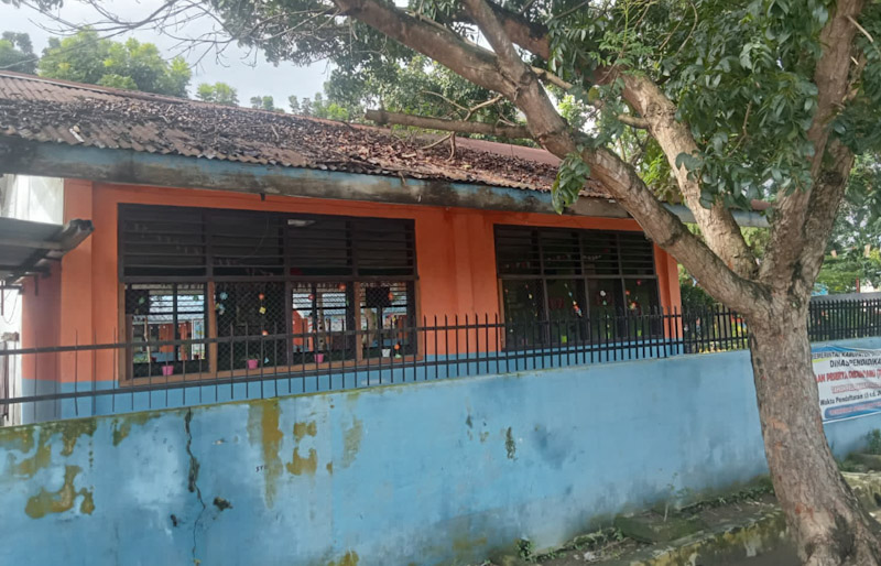 Selain itu dinding tembok dan plafon sekolah juga terlihat kusum, beberapa titik plafon juga terlihat berlubang (bolong).