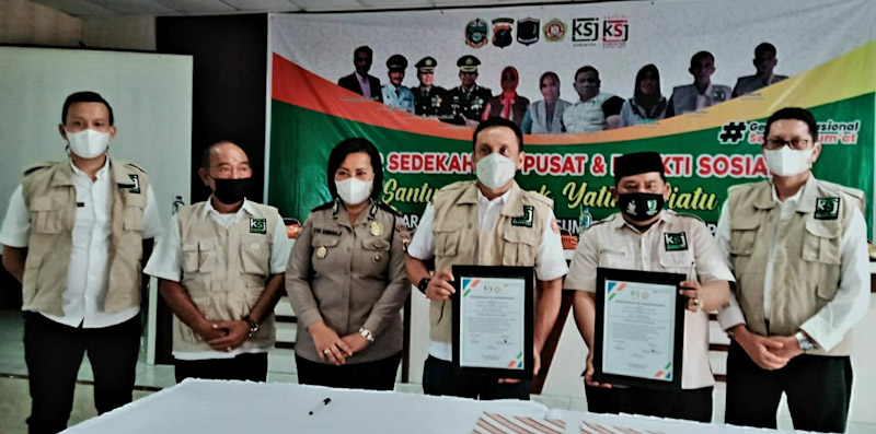 Usai acara MoU ini sejumlah anak yatim dan yatim piatu diberi bantuan sembako dan tali asih. (ENC-1)