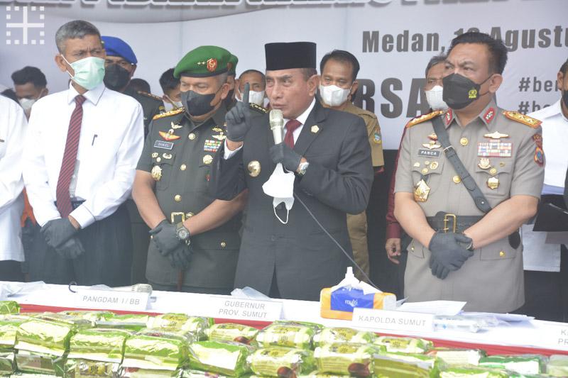 Acara pemusnahan seluruh barang bukti narkotika ini dilakukan bersama Pangdam I/BB dengan Kapoldasu, Irjen Pol Drs RZ Panca Putra Simanjuntak dan Gubernur Sumut, Edy Rahmayadi serta dihadiri pihak terkait lainnya.