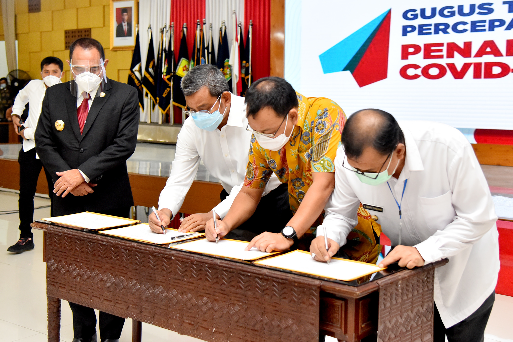 Upaya percepatan penanganan juga dilakukan Gubsu dengan menandatangani komitmen bersama dengan Walikota Medan, Binjai dan Bupati Deliserdang (Mebidang) untuk mengoptimalisasi percepatan penanganan Covid-19, Jumat (14/8). Langkah ini diharapkan dapat menjalin sinkronisasi program dan kegiatan Gugus Tugas Percepatan Penanganan (GTPP) Covid-19 Mebidang dengan GTPP Covid-19 Sumatera Utara.