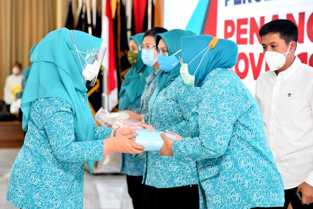Pembagian masker ini secara simbolis diserahkan Ketua TP PKK Pemprov Sumut Nawal Edy Rahmayadi kepada TP PKK Kabupaten/Kota di Posko GTPP Covid-19 Sumut usai penandatanganan MoU Percepatan Penanganan Covid-19 Mebidang, Jumat (14/8). Selanjutnya, masker akan disebarkan di daerah-daerah agar kedisiplinan masyarakat akan protokol kesehatan meningkat.