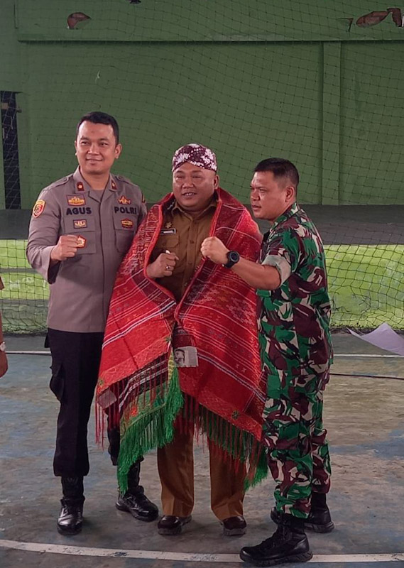 Dalam acara pisah sambut yang penuh keakraban dan kekeluargaan itu, Kapolsek bersama Danramil Percut Sei Tuan, Mayor Sembiring memakaikan ulos dan kain songket kepada Camat yang baru.