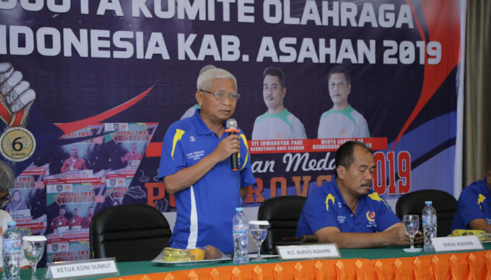Ketua KONI Sumut dalam sambutannya menyampaikan harapannya agar pembinaan atlit di Kabupaten Asahan lebih dapat ditingkatkan, Beliau mengakui bahwa untuk tingkat Sumut, Asahan cukup diperhitungkan hal ini terbukti pada perhelatan olahraga tingkat sumut, Asahan berada pada peringkat 6. Diakhir sambutannya beliau menyampaikan harapannya kepada pemerintah Kabupaten Asahan agar dapat memberikan dukungan dalam pembangunan fasilitas Olahraga di Kabupaten Asahan.