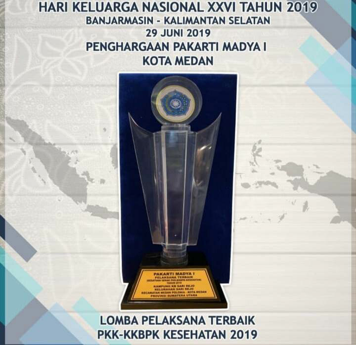 Penghargaan bergengsi itu diserahkan langsung Ketua Umum TP PKK Pusat Ny Erni Guntari Tjahjo Kumolo. Keberhasilan yang diraih Kampung KB Kelurahan Sari Rejo ini berdasarkan Surat Keputusan Ketua TP PKK Pusat Nomor 13/KEP/PKK.Pst/VII/2019. Dengan keberhasilan tersebut diharapkan dapat memotivasi Kampung KB di seluruh kelurahan di Kota Medan untuk mengikuti jejak Kampung KB Kelurahan Sari Rejo.
